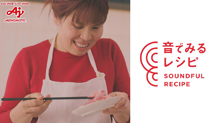 「音でみるレシピ SOUNDFUL RECIPE」は、味の素が視覚障害者と共同開発した“音で調理を学べる”レシピサイト。これまで色や見た目に頼っていた料理のコツを音で伝えることで、見えない人も見える人も、同じように料理を楽しめるようにした。