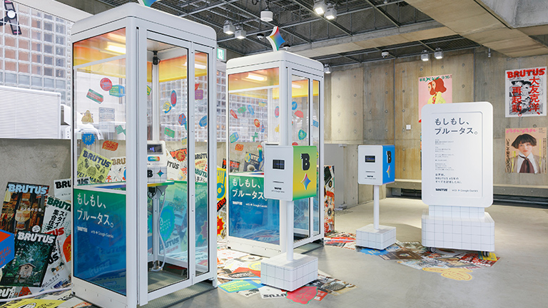 雑誌『BRUTUS』がGoogleのAI、Geminiと共に開発した「もしもし、ブルータス。 with Google Gemini」。 マガジンハウスが創業80周年記念イベントで開催した「マガジンハウス博 “銀座から世界へ”」内に設置され、過去45年分の『BRUTUS』を学習したAIと、電話ボックスを通して音声対話ができる実験的プロジェクトとなった。