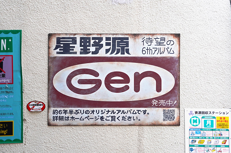 星野源 6th Album『Gen』発売プロモーション。 星野源さんのオリジナルアルバム『Gen』のPR施策として、街に前からあったような古看板を掲示。看板は東京、大阪の商店街エリアを中心に全国9箇所で展開しました。